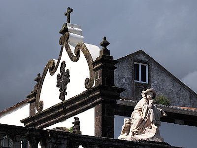 Wir spazierten durch das Stadtzentrum und wollten die Pfarrkirche São Miguel Arcanjo besuchen. Diese dem Erzengel Michael geweihte Kirche, mit ihrer mit dunklem Basalt verkleideten Fassade, wurde im 15. Jahrhundert errichtet und aus dieser Zeit stammt noch das gotische Hauptportal. Sie wurde durch das Erdbeben von 1522 teilweise verschüttet und bald darauf wiederaufgebaut. Dabei wurden Baumaterialien der ursprünglichen Kirche wiederverwendet, das Gotteshaus zählt damit heute zu den ältesten Gebäuden auf São Miguel. Leider war sie geschlossen und wir konnten sie nur von außen fotografieren.