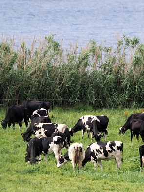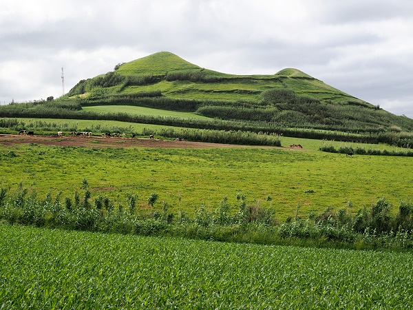 Am nächsten Tag fuhren wir dann mit dem Auto durch die Orte Candelária und Ginetes. Dort zweigt eine Stichstraße ab, die zum sehr schönen Leuchtturm Farol da Ferraria führt. Er liegt malerisch auf einer Klippe, an der westlichsten Spitze von São Miguel. Umgeben von grünem Gras, sanften Hügeln und Kühen.