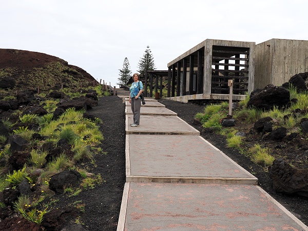 Nachdem wir Leuchtturm und Aussichtspunkt besucht hatten, machten wir uns auf den Weg nach unten, wo ein riesiger Parkplatz nur zum Teil besetzt war. Nicht auszudenken, wie es hier zur Hochsaison aussieht. Um zum berühmten Badebecken zu kommen folgt man dann einfach dem von niedrigen Mauern gesäumten Fußweg vom Parkplatz aus hinter dem Hauptgebäude.