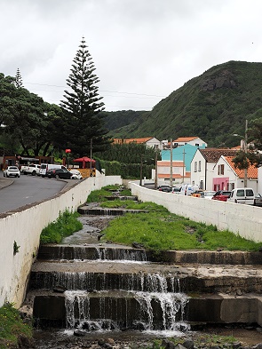 Hier befindet sich der Túnel das Sete Cidades, ein faszinierendes Bauwerk, das die Caldera von Sete Cidades mit der Küste bei Mosteiros verbindet. Am 30. Dezember 1937 eröfnnet, dient der hier endende Tunnel zur Regulierung des Wasserstandes der Kraterseen bei starken Regenfällen weiter oben in den Bergen. So wird Hochwasser im Dorf Sete Cidades verhindert, indem überschüssiges Wasser in Richtung Mosteiros abgeleitet wird.