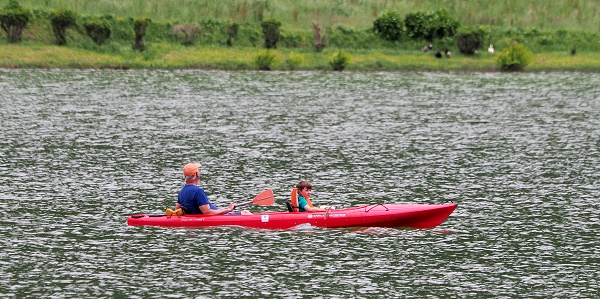 Zuerst kommt man an Garoupa Canoe Tours direkt am Seeufer des Lagoa Verde vorbei. Dort kann man Kanus, Kajaks und Stand-up-Paddleboards ausleihen. Auf dem See waren zahlreiche bunte Boote unterwegs, hätten wir eines mieten wollen, wäre das spontan nicht mehr möglich gewesen, denn alles war bereits ausgebucht. Wir beschlossen daher, zu Fuß weiterzugehen. Leider stellten wir bald fest, dass eine Umrundung des Sees nicht möglich war: Der Weg führt nur bis zum Picknickplatz, auf der gegenüberliegenden Seite gibt es ebenfalls nur eine Stichstraße zu einem Grillplatz. Dazwischen liegt ein Stück sehr steile Kraterwand. Entsprechend gibt es auch zwei recht ebene Stich-Wanderwege ein Stück entlang des Lago Azul auf der anderen Seite der Brücke.