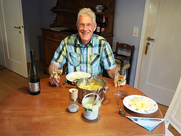 So hatten wir am ersten Abend ganz einfach leckere Kartoffeln und Eier mit Grüner Sauce und Wein dazu. Nach all den deftigen Tellern der letzten Wochen war das perfekt.