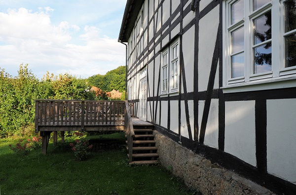 Die Ferienwohnung im alten Forsthaus hat uns auf den ersten Blick gefallen. Dazu kam noch das lustige Detail, dass wir zuvor die Bauhaus-Städte Weimar und Dessau-Wörlitz besucht hatten und nun in einem kleinen Ort in Waldhessen namens Bauhaus unsere Rundreise beendeten. Offiziell nennt sich das Haus Forsthaus Trottenwald, es liegt direkt am schönen Trottenwald im Herzen von Waldhessen.