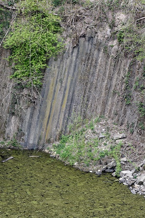 So sind wir vom Kloster zum nahen Steinbruch am 247 m hohen Weilberg gelaufen, hier brachen die Mönche Basalt. Verwendt wurden auch Steine aus dem vulkanischen Gestein Latit für den Bau am südöstlich gelegenen, 287 Meter hohen Stenzelberg im Siebengebirge.