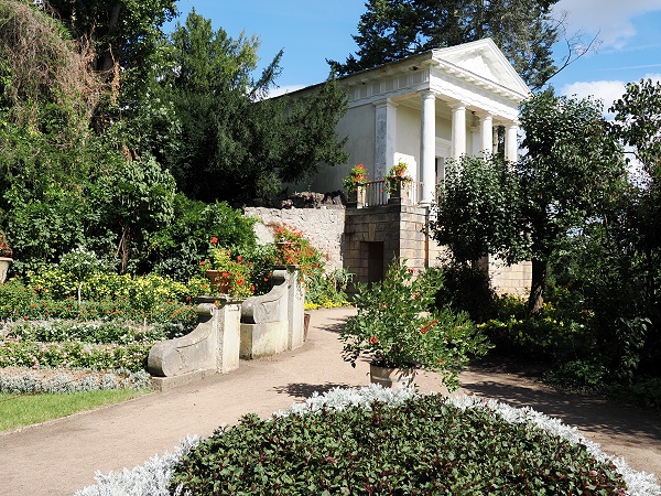 Vom Venustempel im Wörlitzer See hat man einen der schönsten Blicke auf das Schloss und die Parklandschaft. Darunter erstrecken sich Höhlen und enge Tunnels durch die Felsen. Es gibt natürlich auch ein klassizistisches Pantheon, die Nachbildung des römischen Tempels.