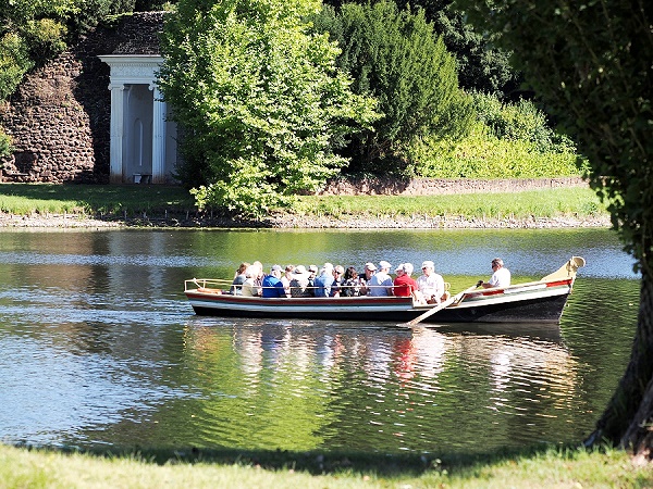 Wer nicht so gut zu Fuß ist, kann heute – wie im 18. Jahrhundert – durch den Park gleiten: Es werden Gondelfahrten auf den Kanälen angeboten. Allerdings waren die seitlichen Kanäle bei unserem Besuch im Spätsommer nicht mehr tief genug, und die Boote schipperten nur auf dem Hauptsee herum. Es gibt einige Fähren, mit denen man die Strecke rund um den See abkürzen kann, aber auch von diesen verkehrten nicht alle.