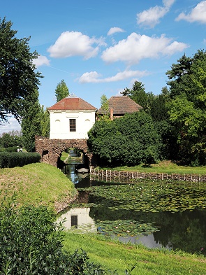 Die Synagoge von 1790, erbaut auf einer kleinen Insel im See, ist Ausdruck religiöser Toleranz im Gartenreich. Im Zweiten Weltkrieg wurde sie beschädigt, später aber originalgetreu restauriert.