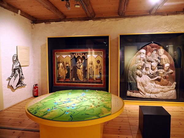 Man läuft durch verschiedene miteinander verbundene Ausstellungen zu Themen wie "Wissen und Macht", "Steinerne Zeugen", "Kloster im Wandel", "Wenn der Kaiser stirbt" oder "Ora et labora". Die Räumlichkeiten der ganzen Ausstellung sind ziemlich verschachtelt. Hier geht es noch mal um die Ecke, da die Treppe rauf oder runter. Immer, wenn man denkt: jetzt ist man durch, kommt noch ein Raum.