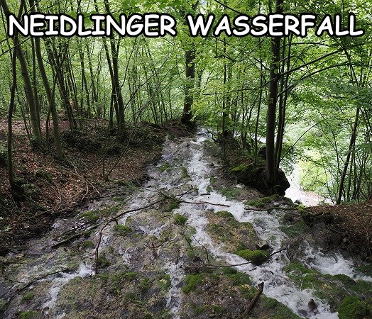 Bis in die fünfziger Jahre bot der Neidlinger Wasserfall bei hoher Wasserführung oder vereist im Winter ein ganz besonderes Schauspiel, das zog viele Fotografen und Naturliebhaber an. Doch auf Grund einer besonders starken Vereisung Mitte der fünfziger Jahre brach die einstmals für besondere Wassereffekte verantwortliche Felsnase unter dem Gewicht der Eismassen ab. Seitdem ist er ein bisschen weniger fotogen. Wir sind auch gar nicht sicher, ob wir den Hauptfall überhaupt gesehen haben, wahrscheinlich lag er am gesperrten Weg oder an einem Wegstück, welches wir nicht gefunden haben. Denn weiter runter oder hoch kamen wir von der Brücke über den Bach aus gar nicht und hier war auch alles sehr zugewachsen. Aber die kleinen Rinnsale unterhalb waren auch recht malerisch.
