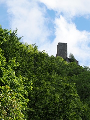 Seit mehren Jahren ist der Abschnitt der Pfannensteige unterhalb der Burg Reußenstein aber leider wegen Felssturzgefahr bis auf weiteres gesperrt und muss über die Wasserfälle direkt auf steilen Abstieg umgangen werden. So hätten wir damals einen großen Umweg in Kauf nehmen müssen und zunächst in das Lindachtal steil absteigen, dafür hatten wir aber leider nicht mehr genug Zeit und Energie.