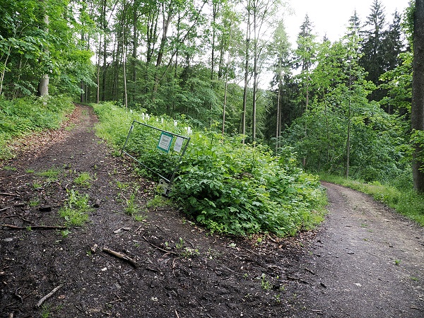Es gibt hier mehrere Wege und auch eine Schranke, die allerdings offen standen. An eine Weggabelung war laut Schild der obere Weg wohl gesperrt, so nahmen wir den unteren, was nur einen kleinen Umweg bedeutete. Jetzt am Nachmittag war hier nichts los und wir trafen auch niemanden auf dem Weg.
