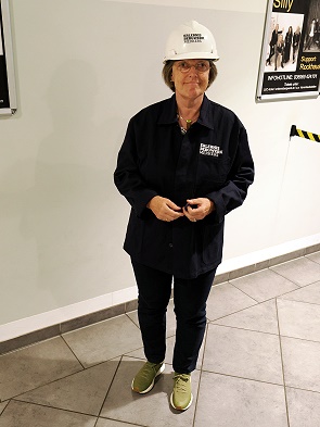 Nach der Einweisung kommt man zur Garderobe, wo sich jeder Teilnehmer einen festen Kittel und einen Helm anzieht. Das Mitnehmen von Rucksäcken und großen Taschen nach unter Tage ist nicht gestattet, die max. Größe ist DIN A4. Man kann seine Sachen hier in der Umkleide lassen, die wird abgeschlossen, wenn alle Teilnehmer parat sind. Dann erfolgt die Einfahrt mit dem Förderkorb in 90 Sekunden auf ein Niveau etwa 500 Meter unter Tage. Dabei werden die Marken abgegeben und gezählt.