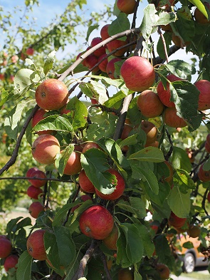 Zuerst fuhren wir zum Hauptgelände "Am Eichenberg", es gibt direkt gegenüber vom Haupteingang einen ungepflasterten Parkplatz. Entlang der Zufahrtsstrasse stehen viele Obstbäume, die prächtige Äpfel in vielen verschiedenen Farben und Größen trugen. Als wir am Eingang ankamen, war gerade niemad an der Kasse und wir konnten einfa so reingehen. Gezahlt haben wir dann später beim Verlassen des Geländes.