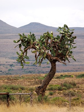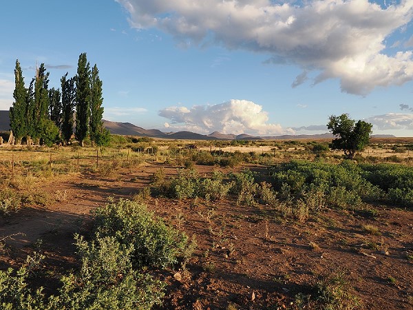 Hier findet man meist nur Zwergsträucher, Gräser in höheren, feuchteren Lagen und einige Sukkulenten. Die Vegetation ist niedrig, angepasst an Trockenheit, Frost und Beweidung. Herausstechend waren natürlich die großen Pappeln zwischen Haus und Damm sowie ein schon zum Baum gewachsener Feigenkaktus.