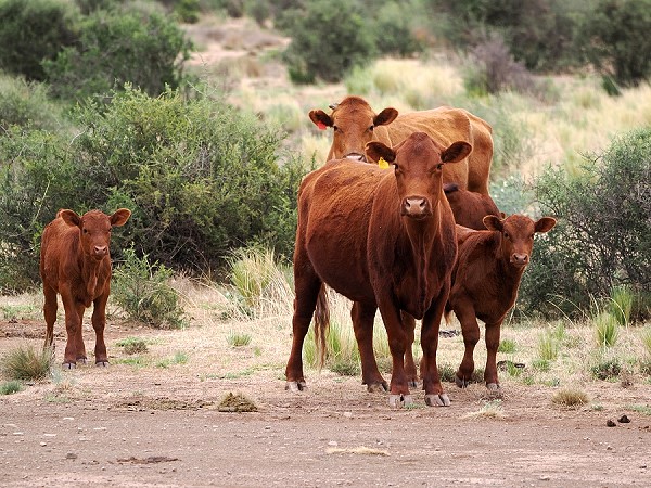 Ein entspannter Morgen mit einer Tasse Kaffee auf der noch schattigen vorderen Veranda, wenn die hübschen Rinder zu Besuch an den Zaun kommen und uns mit ihren Kälbern zugucken. Bonsmara-Rinder sind eine südafrikanische Rinderrasse, die speziell für trockene, warme Regionen wie die Karoo entwickelt wurde. Gezüchtet von Jan Bonsma, daher der Name. Es sind mittlere bis große Tiere mit ruhigem Temperament und meist rotbraunem Fell. Hoch geschätzt für effiziente Fleischproduktion unter extensiven Bedingungen.