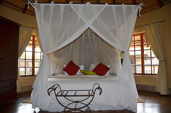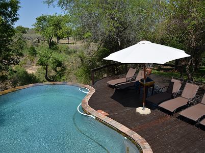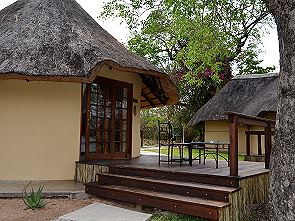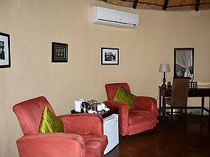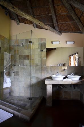 Angeboten werden fünf rustikale, mit Ried gedeckte Rondavels mit Blick in den Garten, die in einer Gruppe angeordnet sind. Dann gibt es noch sechs Luxus-Suiten mit einer eigenen Aussichtsterrasse. Von hier aus hat man den direkten Blick auf das trockene Flussbett, zahlt dafür natürlich auch mehr. Die Rondavel Bewohner haben den gleichen Blick von der Terrasse am zweiten Pool, der sich direkt vor den Unterkünften befindet und mehr Privatsphäre bietet als der Pool vor dem Hauptgebäude. Wer es ganz besonders privat und teuer mag, der bucht die Honeymoonsuite mit zusätzlicher Außendusche und einem eigenen Plunge Pool.