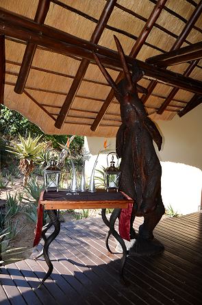 Zwischen den Häusern stromern immer ein paar Tiere herum, da die Lodge nicht eingezäunt ist. Ein paar Nyalas sind hier ziemlich zahm, die haben wir öfters gesehen. Aber auch kleinere Tiere wie Vögel oder Mistkäfer lassen sich in der Gartenanlage beobachten.