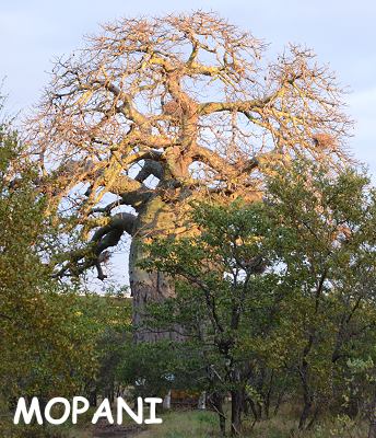 Das Mopani Rest Camp liegt im nördlichen Bereich des Kruger und damit ein wenig Abseits der klassischen und manchmal vielbefahrenen Touristenpfade. In der Umgebung locken abwechslungsreiche Landschaften, einige interessante Seen und eine sehr erholsame Ruhe. Mopani wurde im Jahr 1989 an dem östlichen Ufer eines großen Stausees eröffnet und kann etwa 500 Gäste beherbergen. Die Landschaft ist hierbei sehr unberührt und geblieben und die einzelnen Häuser sind direkt in den Busch integriert worden. Vom anderen Ufer des Damms kann man das Camp kaum erkennen, nur die Funkmasten und Blitzableiter ragen weit in den Himmel. Mopani ist das neuste der Hauptcamps im Park und die gesamte Anlage wirkt sehr gepflegt.
