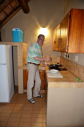 Als wir ankamen war in der Küche der Toaster defekt. Wir haben das an der Rezeption reklamiert und umgehend wurde uns ein nagelneues, noch eingepacktes Gerät gebracht. So war ein knuspriges Frühstück gesichert. Nett war der moderne neue Kühlschrank, der leider für den gemauerten schattigen Stellplatz des alten Gerätes ein paar Zentimeter zu hoch ist und deshalb in dere Sonne davor steht- - that's Africa. Unten auf dem Foto ist das zu erkennen.