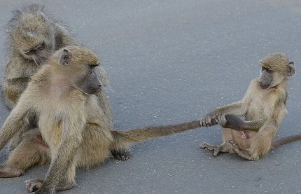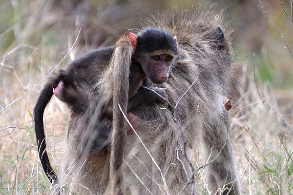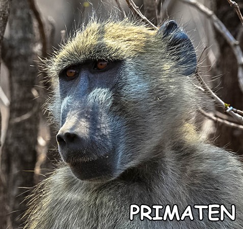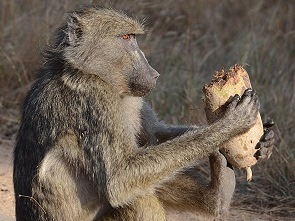 Es gibt fünf verschiedene Primatenarten im Kruger National Park. Die mit Abstand häufigste ist der Tschakma-Pavian (Papio ursinus), auf englisch Baboon und auf Deutsch Bärenpavian genannt. Mit einer Kopfrumpflänge von bis zu 115 Zentimetern, wozu noch ein bis zu 71 Zentimeter langer Schwanz kommt, und einem Gewicht von 15 bis 31 Kilogramm bilden sie die größte und schwerste Pavianart im Nationalpark.