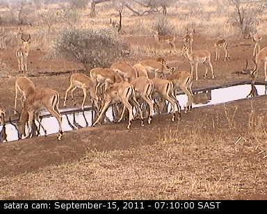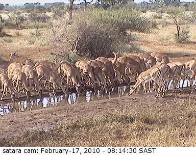 Neben den beiden Kameras im Kruger National Park, die in den Camps Satara und Orpen am Wasserloch stationiert sind,gibt es auch noch eine Kamera im Addo National Park. Eine weitere befindet sich im Nossob Camp im Kagalagadi Tranfrontier National Park in der Kalahari. Somit hat man immer vier Wasserlöcher auf einmal im Blick.