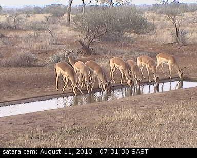 Ich habe die Bilder immer archiviert, wenn es mal ganz besondere Tiere oder schöne Szenen am Wasserloch gab. Hier ist eine kleine Auswahl der Webcam in Satara mit Snapshots, die bei Tageslicht entstanden ist. Die Nachtaufnahmen findet Ihr hier.