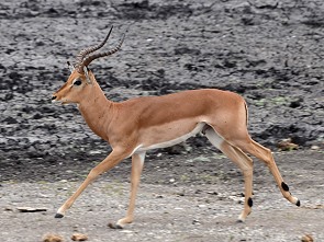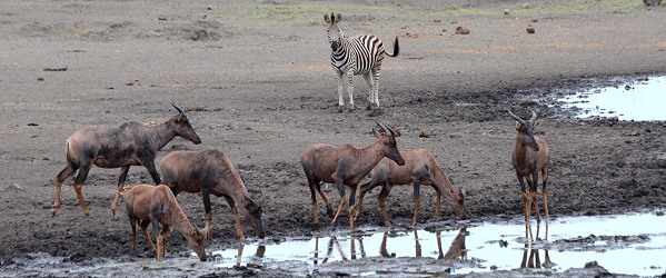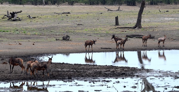 Dafür hatten wir Glück und neben Giraffen und Zebras kanm auch eine Gruppe der seltenen Tsessebe Antilopen aus dem Wald, um am Wasserrand zu trinken. Sie gehören zur Gruppe der Kuhantilopen und im Kruger sieht man diese Art eher selten. Die Schulterhöhe beträgt etwa 120 cm, das Gewicht etwa 130 kg, beide Geschlechtern tragen ein geringeltes Gehörn. Die beiden Hörner haben eine gemeinsame Basis und erwecken den Eindruck einer Leier oder eines auf dem "Rücken" liegenden Halbmondes. Daher stammt der Name dieser Antilope.