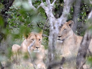 Doch zuerst fuhren wir vom Bird Hide in Richtung Kanniedood Dam und nahmen dabei alle Schleifen mit, die am Wegrand liegen. So verpassten wir leider knapp die Löwenfamilie, die sich kurz vor unserer Ankunft vom Straßenrand in den dichten Busch zurückgezogen hatte. Leider lagen sie nun dort gur versteckt und beqwegten sich nicht mehr, nur mit hin- und herrangieren konnten wir sie mit Mühe durch die Büsche erkennen.
