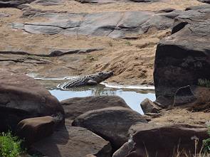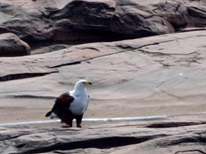 Und auf der Felsplatte direkt gegenüber lag in einem Mini-Tümpel ein kleines Krokodil und direkt darüber saß ein großer Schreiseeadler auf dem blanken Felsgestein.