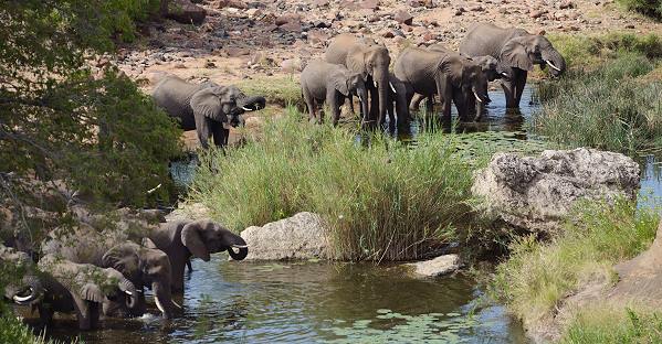 Wir konnten uns von dem Anblick der trinkenden Elefanten nur schwer trennen, aber wir mussten ja noch weiter bis zum Shimuwini Bushveld Camp, dem nächsten Übernachtungsort. Ich habe viele Fotos gemacht, hier ist eine kleine Auswahl und ein paar Videos zu sehen.
