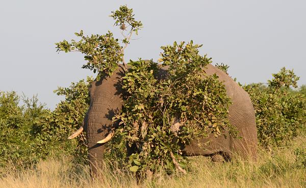 Zwei Elefanten kreuzten hier unseren Weg, wahrscheinlich liefen sie gerade in Richtung Wasserloch. Wir mussten doch sehr schmunzeln, als einer der beiden zuerst neugierig in unsere Richtung schaute. Dann ging er schnell rückwärts in den Busch und versuchte, sich hinter einem dünnen Bäumchen vor uns zu verstecken. Natürlich klappte das nicht und ab und zu lugte er noch einmal um die Ecke. Als wir keine Anstalten machten zu verschwinden überquerte er dann am Ende doch die Straße vor uns. Hier sind ein paar nette Bilder von dem Schelm. Wo ist der Elefant?