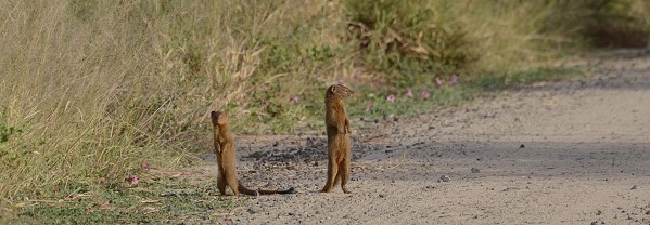 Am Ende der S125 sahen wir dann auch noch zwei Exemplare der grösseren Verwandten auf der Straße stehen, es waren Schlankmangusten oder auf Englisch Slender Mongoose.
