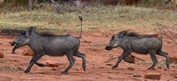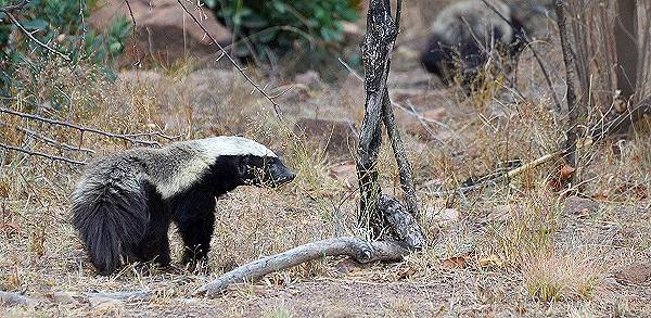 Dafür hatten wir eine viel seltenere Begegnung, denn an der Mbidi Road sahen wir plötzlich unsere ersten beiden Honigdachse. Ein Pärchen, das sich leider beim Anblick unseres Autos erschreckt hatte und sich ganz schnell aus dem Staub machte. Beide verschwanden im Gebüsch, dennoch gelangen mir in den paar Sekunden noch einige Bilder.