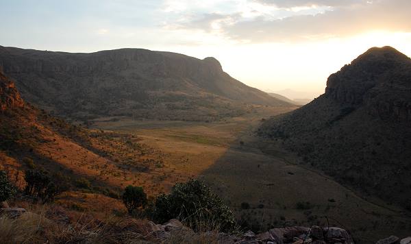 Steile Gebirgshänge und flache Hügelketten im Wechsel mit tiefen Tälern machen diesen Teil des Marakele National Park zu einem landschaftlich vielfältigen Erlebnis. In diesem Teil des Parks befinden sich auch das Tlopi Restcamp mit schöner Aussicht auf die Berge.