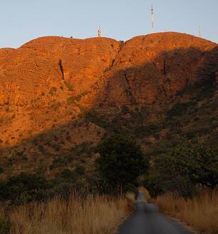 Oben angekommen steht man vor einigen Antennenmasten, die von Zäunen umgeben sind, die Region rundum ist Sperrgebiet. Der Weg hoch zu den Türmen ist eigentlich die dafür gebaute Servicesstraße und nur durch ein Abkommen der Nationalparkverwaltung mit SANDF (South African National Defence Force) und Sentech (Signal Distributor für South African Broadcasting Sektor) zu befahren.