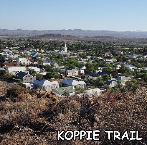 Der Trail beginnt am Rande der Stadt. Der Boden wechselt zwischen festem Sand und Kieselpfaden und führt hinauf zu Ginsterbüschen, Proteas und vereinzelten Aloe-Pflanzen. Ein Höhepunkt der Wanderung ist der Panoramablick vom ersten größeren Koppie. Nach einem sanften Anstieg eröffnet sich ein beeindruckender Blick: Das Tal der Dorps River schlängelt sich in der Ferne durch das Land, und die Stadt Prince Albert wirkt wie eine Miniaturlandschaft, eingebettet in die weiten Ebenen. Der Höhenunterschied zwischen Ort und Koppie beträgt ca. 200–250 Meter.
