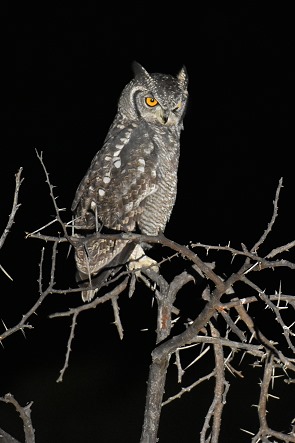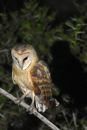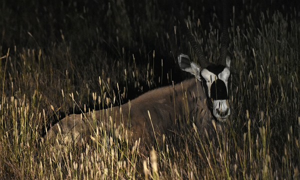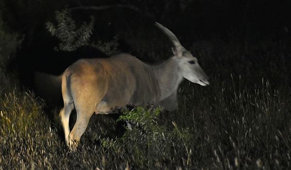 Hier sollten es an diesem Abend zuerst ein paar Antilopen, Gnus und Zebas sein, die im Dunkeln am Wegrand standen. Höhepunkt für uns war die Sichtung einer Schleiereule, die wir zum ersten Mal in Südafrika sahen. Ein wenig später sahen wir dann auch noch einen Uhu.