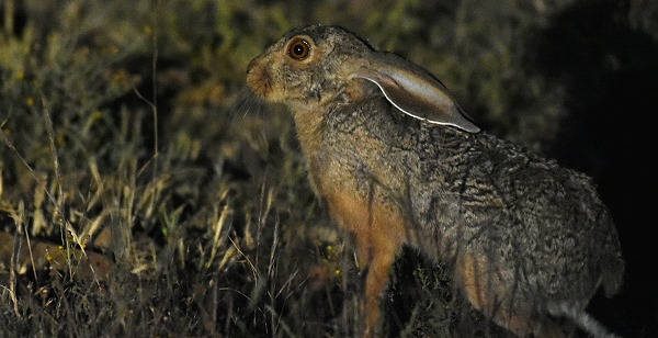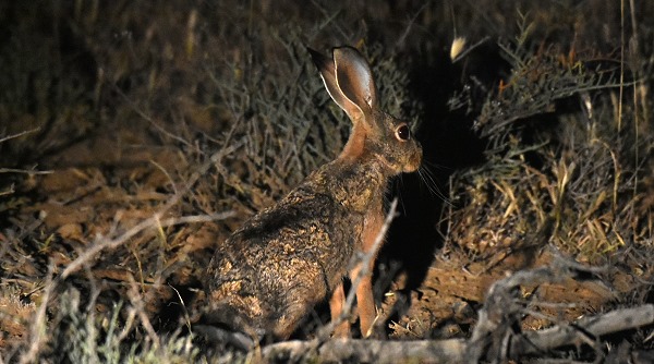 Unser Fahrer fuhr auch auf dem Gelände einer ehemaligen Farm herum, das an den Nationalpark grenzt. Dort verstanden wir dann, warum es hier so viele Eulen gibt: Überall stoben Hasen vor unserem Auto davon. Andere Jäger ließen sich leider nicht blicken, bis auf eine Schakalmutter mit Jungtieren.