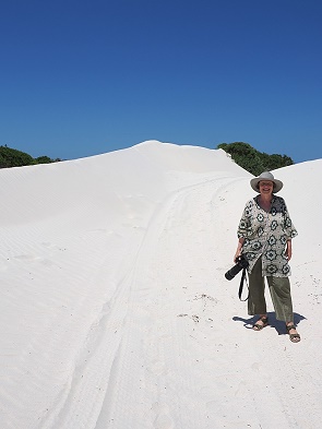 Der Sand der Dünen ist gleißend weiß hier. Der Strandabschnitt ist lang, windoffen und weitgehend unberührt. Auf vielen Flächen war der Sand bis auf den kiesigen Untergrund weggepustet. Keine Promenade, kein Lärm, keine Bausünden im Hintergrund. Nur die teilweise bewachsenen Dünen, das Meer und der Himmel. Im Vergleich zu Agulhas und Struisbaai wirkt "Die Plaat" fast zeitlos und ist der perfekte Gegenpol zur touristischen Entwicklung der Region. In den Dünen fanden wir blühende Pflanzen, die von unzähligen Schmetterlingen besucht wurden.