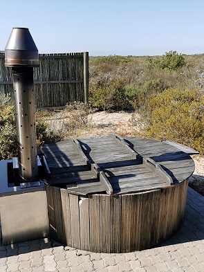 Wir haben uns für das Kingfisher Cottage entschieden, das einzige Cottage, das über einen Hot Pool vor dem Haus verfügt, der mit Holz geheizt wird. Leider war es am Abend recht windig und ziemlich frisch.