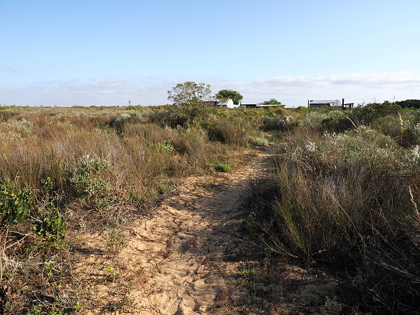 Die Einfahrt zum Rocherpan Camp ist gut mit den braunen "CapeNature"-Schildern markiert. Sobald man das Haupttor passiert hat, führt eine kurze Schotterpiste zum Büro und dann weiter zu den Cottages. Diese Piste ist normalerweise in sehr gutem Zustand und problemlos mit einem normalen PKW befahrbar.