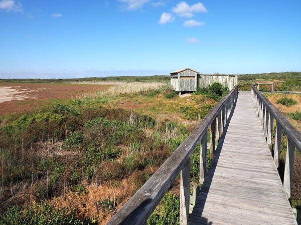 Der See entstand, als hier im Jahr 1839 von einem Mann namens Rocher ein Damm gebaut wurde, um Weideland zu bewässern. Heute ist es eines der wichtigsten Feuchtgebiete der Region. Wenn die flache Pfanne im Winter und Frühling mit Wasser gefüllt ist wimmelt es hier von Wasservögeln, bis zu 70 Arten hat man gezählt. Im Hochsommer kann sie allerdings vollkommen ausgetrocknet sein, was auch eine ganz eigene, fast außerirdische Optik erzeugt. Mehr Bilder und Infos findet Ihr auf der Seite Views im Rocherpan Nature Reserve