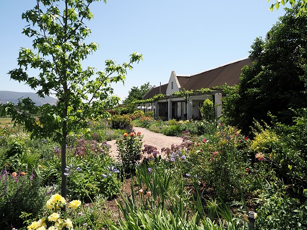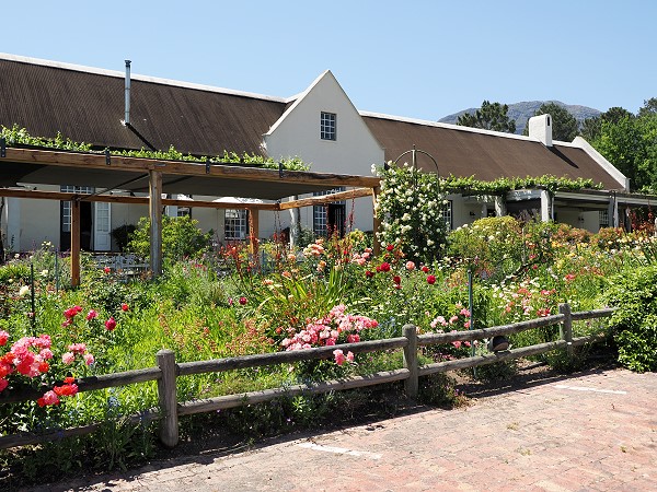 Das Avondale Wine Estate liegt in der Nähe von Paarl, am Fuße der Klein Drakenstein Mountains. Hier hatten wir reserviert und parkten direkt vor dem Eingang. Vor dem stilvollen Gebäude im alten Kap-Holländischen Stil mit Blick auf Weinberge und das Tal befindet sich hier ein schöner, üppiger Garten, in dem im Frühjahr viel blühte.