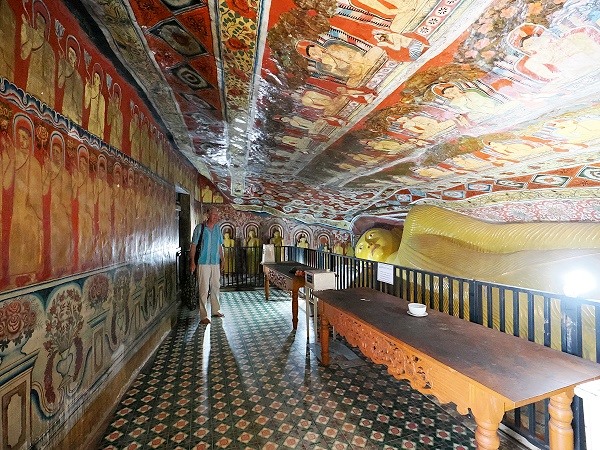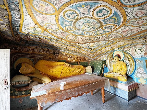 Sobald man die Schwellen zu den verschiedenen Tempelräumen überschreitet, taucht man in ein Halbdunkel ein, das nur von wenigen elektrischen Lichtquellen erhellt wird. In fast jeder der sieben größeren Höhlen dominieren massive, farbenfrohe Statuen das Bild. Besonders eindrucksvoll sind die liegenden Buddhas, die den Übergang ins Nirvana symbolisieren. Diese Statuen sind oft mehrere Meter lang und direkt aus dem Fels geschlagen oder aus einer Lehm-Stuck-Mischung geformt. Ihre friedlichen Gesichter und die detailreichen Faltenwürfe der Gewänder zeugen von der hohen Handwerkskunst der verschiedenen Epochen, von der Anuradhapura-Periode bis hin zur Kandyan-Zeit.