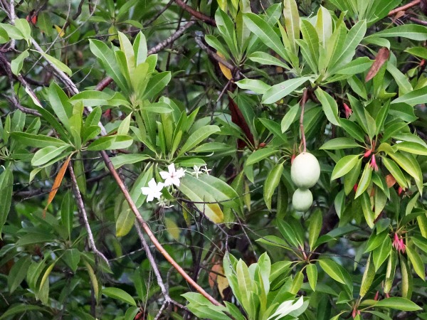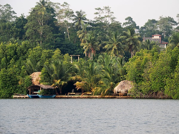 Die Ufer der Lagune sind von dichten Mangrovenwäldern, Zimtpflanzungen und Palmenhainen gesäumt, was ihr eine fast dschungelartige Atmosphäre verleiht. Dazwischen stehen einige Häuser, aber noch war es zu dunkel, um viel zu erkennen.