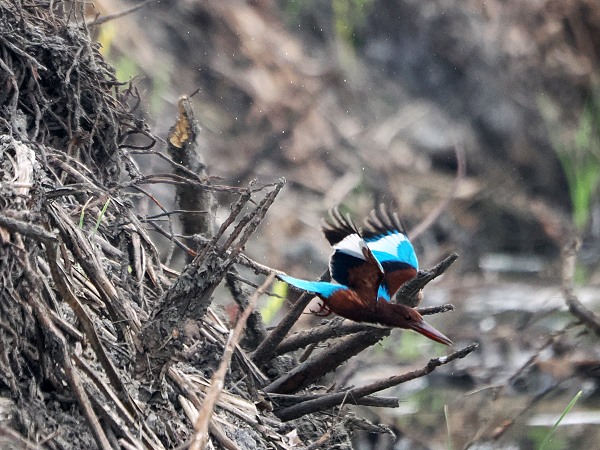 Der Braunliest, auch White-throated Kingfisher genannt, ist ein überall vertretener, auffälliger Vogel. Mit seinem schokobraunen Gefieder und den leuchtend türkisblauen Flügeln ist er oft auf Stromleitungen oder Zaunpfählen zu finden, von wo aus er nicht nur Fische, sondern auch Insekten im Feld erspäht.