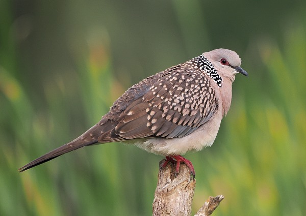 Die Perlhalstaube (Spilopelia chinensis), im Englischen als Spotted Dove bekannt, zählt zu den am häufigsten anzutreffenden Vögeln in den Kulturlandschaften und Gärten Sri Lankas. Sie gehört zur Familie der Tauben und ist besonders für ihr sanftes Wesen sowie ihren charakteristischen Ruf bekannt. Das auffälligste Merkmal ist das breite, schwarze Band im Nacken, welches mit feinen weißen Punkten übersät ist und ihr diesen Namen eingebracht hat.